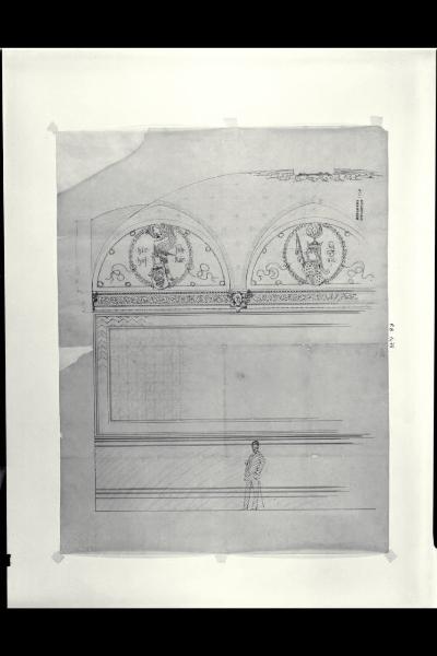 Sezione parziale della Sala delle Sculture (o del Consiglio segreto) nella Rocchetta del Castello Sforzesco di Milano. Sezione parziale della Sala delle Sculture (o del Consiglio segreto) nella Rocchetta del Castello Sforzesco di Milano