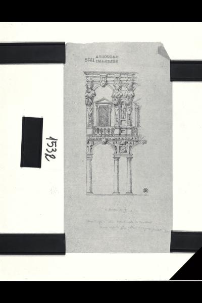 Milano, Palazzo Marino, dettaglio del prospetto del cortile interno. Milano, Palazzo Marino. Cortile interno. Alzato. Dettaglio