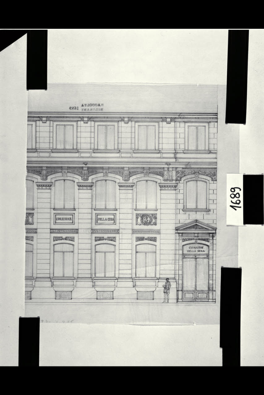 Milano, nuova sede del Corriere della Sera, via Solferino: prospetto e ingresso principale. Milano, via Solferino, sede del "Corriere della Sera". Prospetto ed ingresso principale