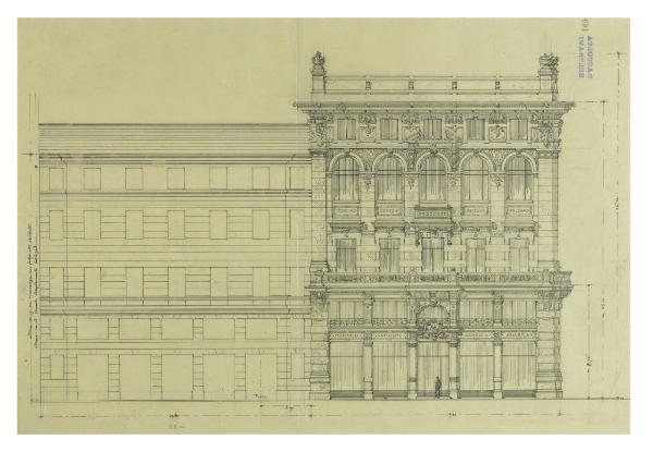 Milano, Palazzo Dario-Biandrà: studio del prospetto su via Tommaso Grossi