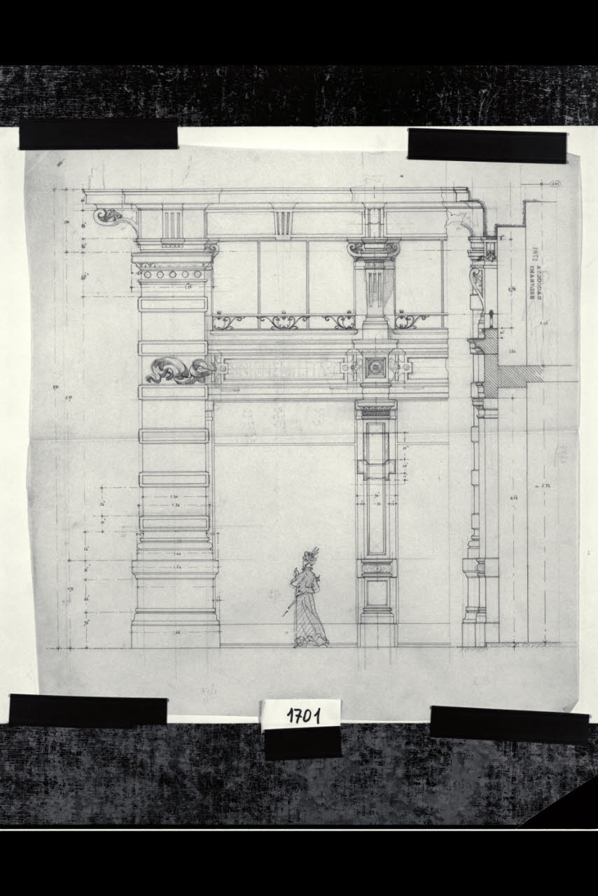 Milano, Palazzo Dario-Biandrà: progetto definitivo del prospetto verso piazza Cordusio. Dettaglio del piano terra. Milano, Casa Dario-Biandrà. Progetto definitivo del Prospetto verso piazza Cordusio. Dettaglio del piano terra