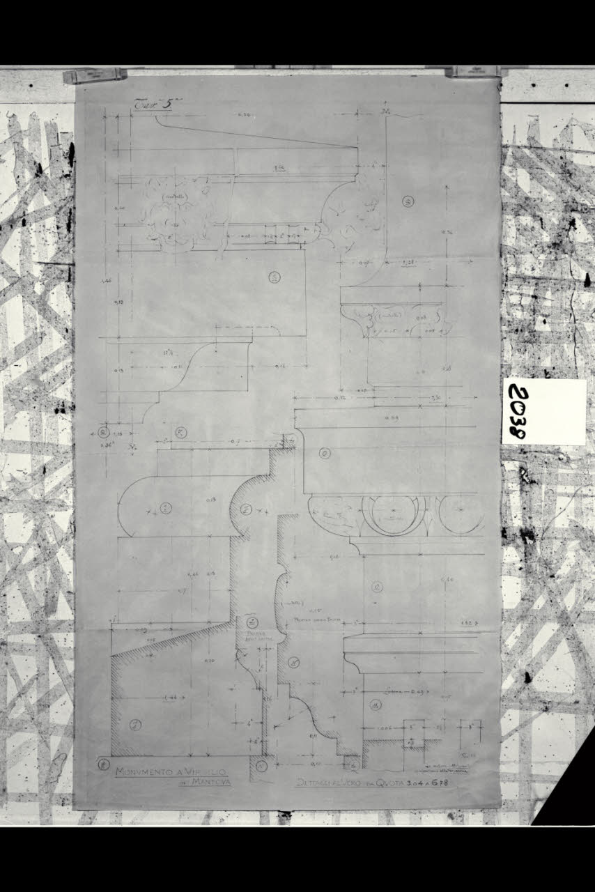 Mantova, Monumento commemorativo a Virgilio. Dettagli delle cornici e delle modanature. Sezioni. Mantova, Monumento commemorativo a Virgilio. Dettagli delle cornici e delle modanature. Sezioni