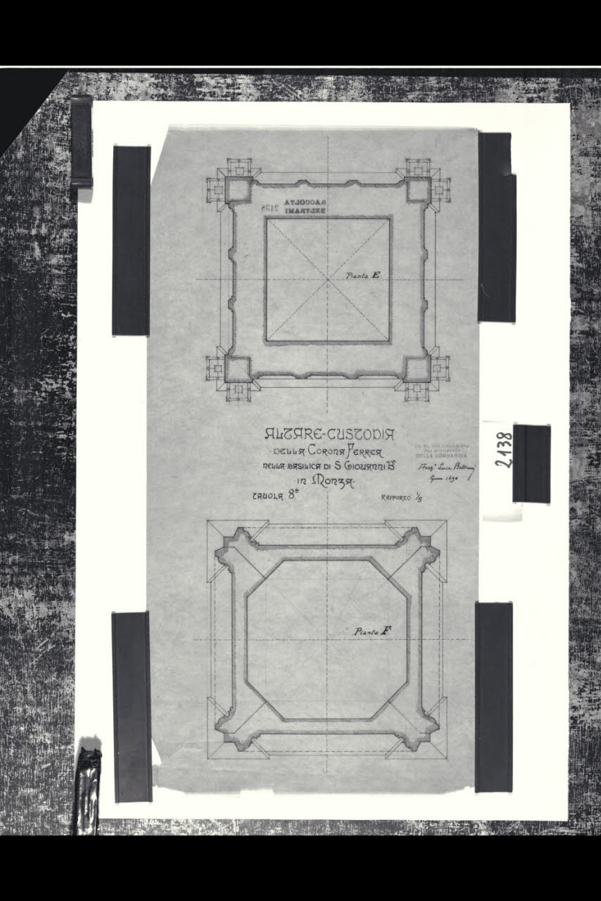 Monza, Basilica di San Giovanni. Cappella della Regina Teodolinda. Piante (a diverse quote) dell'altare custodia. Monza, Basilica di San Giovanni. Cappella della Regina Teodolinda. Piante (a diverse quote) dell'altare custodia