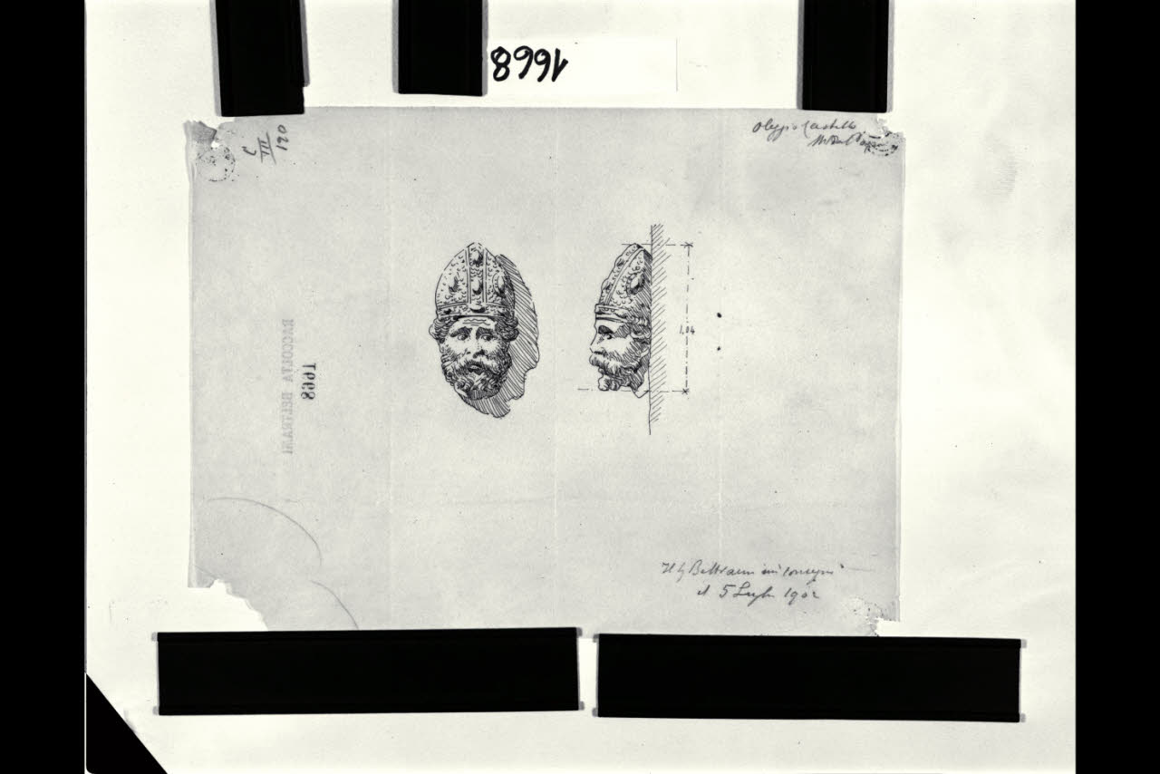 Studio della testa di S. Ambrogio (fronte e profilo) della Torre Umberto I del Castello Sforzesco di Milano. Studio della testa di S. Ambrogio (fronte e profilo) della Torre Umberto I del Castello Sforzesco di Milano