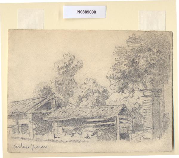 - NOTIZIE STORICO CRITICHE L'artista ha definito il disegno "Alla Magolfa" nella pagina manoscritta che accompagna il settimo dei diciotto fascicoli della raccolta denominata "Vecchia Milano". Un'antica strada fuori delle mura spagnole da Porta Ticinese conduceva ad un agglomerato di case rustiche chiamato "Magolfa", disposte attorno alla seicentesca chiesetta di Santa Maria del Sasso. Alcuni ipotizzano che la contrada risalga all'epoca longobarda e che tragga la sua denominazione da un nome proprio come Ghisulfo o Vidigulfo. Altra plausibile ipotesi è che il nome derivi dall'antico termine del dialetto milanese "magòlc" che significa stagno o pantano, quindi località acquitrinosa.\nLa vedova di Ferrari, proponendo i disegni all'attenzione del Comune di Milano, riconduceva la loro realizzazione agli ultimi anni di vita del marito. Una delle opere reca la data 1926; inoltre presso il Museo di Milano si conserva un'altra serie di 16 analoghe vedute a matita di Ferrari, datate dal 1924 al 1931. Pertanto si ritiene che la serie del Civico Gabinetto dei Disegni sia stata eseguita nell'arco cronologico dal 1924 al 1932. \nIn quell'epoca Milano stava conoscendo notevoli trasformazioni urbanistiche e il pittore, per contrastare la perdita di memoria provocata dalle demolizioni, decise di fissare nei suoi disegni gli angoli e gli scorci destinati a un radicale cambiamento.