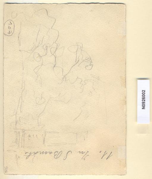 - NOTIZIE STORICO CRITICHE Nel disegno si scorgono schizzi di elementi vegetali. L'iscrizione "In S. Barnaba" si riferisce alla veduta sul recto del foglio.