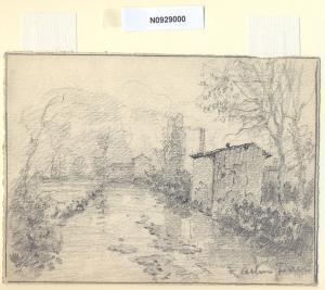 - NOTIZIE STORICO CRITICHE L'artista ha definito il disegno "Lambro a Lambrate" nella pagina manoscritta che accompagna l'undicesimo dei diciotto fascicoli della raccolta denominata "Vecchia Milano". L'attuale denominazione del luogo deriva dal fiume sul quale il vicus si trovava, il Lambro, cioè "pescoso", o limpido". È impossibile stabilire la data precisa di fondazione del vicus. Le strade che segnavano i confini del territorio lambratese erano due, la Milano-Bergamo, a nord, che partiva da porta Orientale, e la Milano-Brescia, a sud, con partenza da porta Tosa. Il confine orientale era il fiume stesso, mentre a Ovest il vicus arrivava all'attuale asse via Teodosio-Ponzio-Aselli. È con molta probabilità, inoltre, che Lambrate fosse porto fluviale per la vicina e più potente Mediolanum. Con il loro arrivo, i Romani sfruttarono la zona ricca di rogge per l'agricoltura e costruirono un sistema di navigazione fluviale intorno al fiume Po, ancora in vigore durante il medioevo. Durante l'VIII e il IX secolo sorsero a Lambrate due monasteri benedettini, dei quali sopravvive oggi la chiesa di San Martino (della chiesetta eretta nel XV secolo resta solo il campanile, nel 1913 la costruzione originaria fu completamente sostituita da un nuovo edificio destinato al culto) e la cascina Cavriana, dove l'abside a emiciclo, ripartito da pilastrini in rilevo e coronato da archetti, in origine parte della chiesa di Sant'Ambrogio, è attualmente adibito a fienile. Con la distruzione del 1162 di Milano ad opera di Federico Barbarossa, Lambrate venne elevata al rango di "borgo imperiale", e qui vennero accolti i milanesi in esilio da Porta Orientale. Con la dominazione spagnola, nel XVI secolo, viene costruita la prima industria bellica , la "Polveriera", che segnò la storia e la fortuna lambratese, al suo posto fu poi costruita, sotto Mussolini, una delle sedi dell'istituto dei Martinitt. Gli Spagnoli trasformarono il borgo in feudo, promulgandone la vendita, e tale condizione persisterà fino all'arrivo di Napoleone Bonaparte, quando Lambrate divenne libero comune. Alcuni decenni dopo, mentre a Milano veniva ultimata la facciata del Duomo, un decreto del viceré francese, nel gennaio del 1808, annetteva il comune di Lambrate alla città di Milano. Con gli austriaci nel 1816 Lambrate tornò indipendente e lo restò fino al dicembre 1923, anno in cui numerose frazioni periferiche vennero annesse al comune di Milano.\nLa vedova di Ferrari, proponendo i disegni all'attenzione del Comune di Milano, riconduceva la loro realizzazione agli ultimi anni di vita del marito. Una delle opere reca la data 1926; inoltre presso il Museo di Milano si conserva un'altra serie di 16 analoghe vedute a matita di Ferrari, datate dal 1924 al 1931. Pertanto si ritiene che la serie del Civico Gabinetto dei Disegni sia stata eseguita nell'arco cronologico dal 1924 al 1932. \nIn quell'epoca Milano stava conoscendo notevoli trasformazioni urbanistiche e il pittore, per contrastare la perdita di memoria provocata dalle demolizioni, decise di fissare nei suoi disegni gli angoli e gli scorci destinati a un radicale cambiamento.