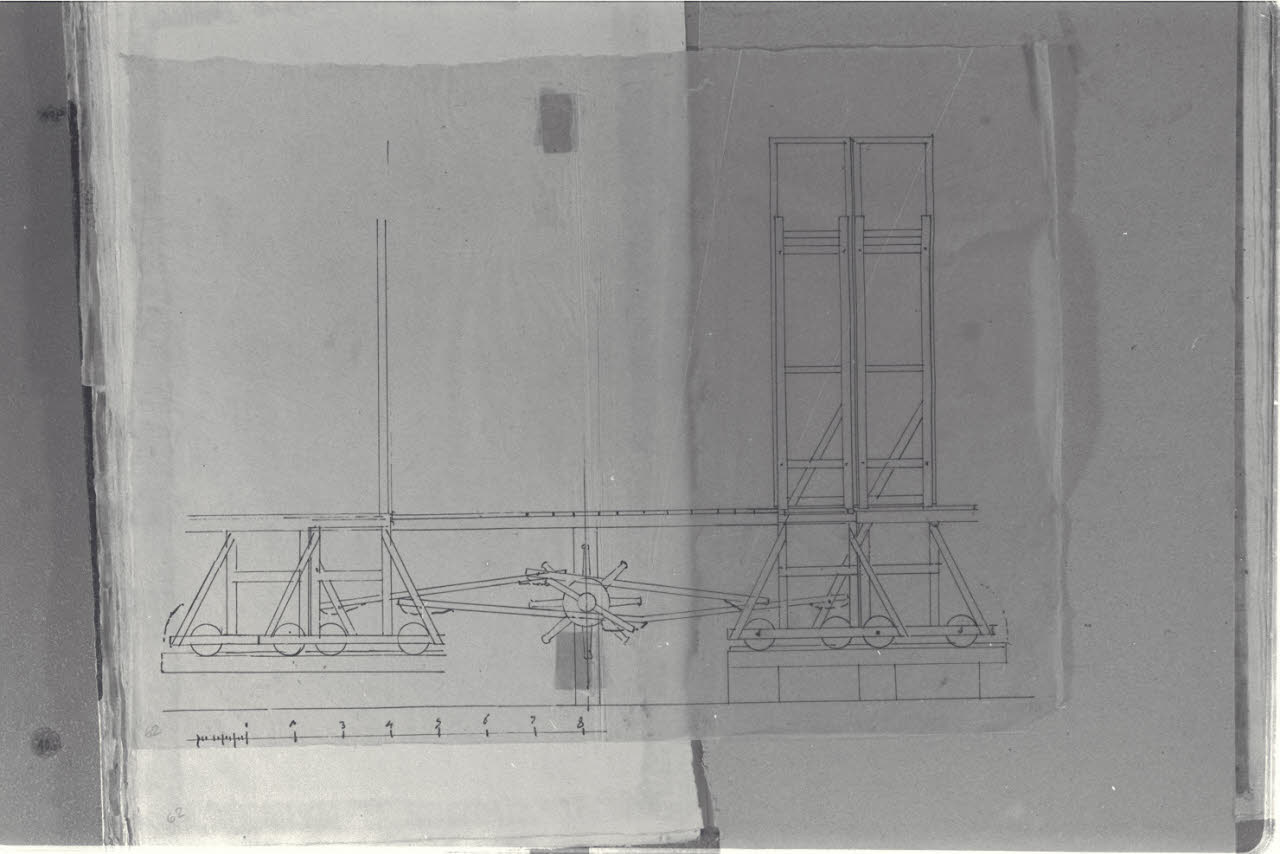 - NOTIZIE STORICO CRITICHE Il cosiddetto "Album Piermarini" è un taccuino di particolari e note, un fascicolo di 58 fogli (116 pagine) che raccoglie disegni e scritti riferiti a opere di Piermarini, Pellegrini, Segrè, Richino e Giocondo Albertolli; di questi, probabilmente nessuno è autografo di Piermarini. La sua impaginazione, la tecnica disegnativa impiegata in gran parte dei fogli e l'aspetto grafico sembrano quelli preparatori a incisioni per una pubblicazione: secondo parte della critica, potrebbe trattarsi di una bozza, redatta da un collaboratore (forse Marcellino Segrè), al fine di farne un manuale a uso dell'Accademia di Belle Arti. L'album è una copia del secondo dei due Zibaldoni di Giuseppe Piermarini, conservati presso la Biblioteca Comunale di Foligno con il titolo "Libro di appunti, ricordi, disegni vari".\nIl foglio mostra un dispositivo scenico che permetteva di montare su quattro carrelli due coppie di quinte teatrali.