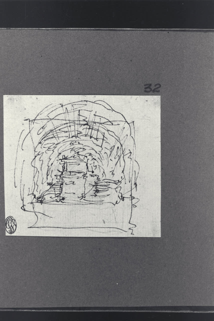 - NOTIZIE STORICO CRITICHE Il disegno fa parte di un piccolo album Vallardi del 1840, di dimensioni mm 160 x 175, sulla cui copertina in pelle marrone chiaro è incisa l'iscrizione in lettere capitali dorate "Paolo Landriani / milanese / e suoi contemporanei / nell'arte prospettica valentissimi / questi loro disegni / Giuseppe Vallardi / raccolse per tramandare / co' passati maestri a' futuri / la stabile rinomanza / della scuola lombarda / l'anno MDCCCXL". Ogni singolo disegno è incollato a un foglio dell'album di carta di colore grigio-azzurro.