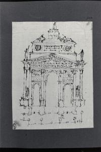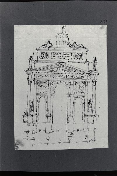 - NOTIZIE STORICO CRITICHE Il disegno fa parte di un album Vallardi del 1840, di dimensioni mm 254 x 295, sulla cui copertina in pelle marrone chiaro è incisa l'iscrizione in lettere capitali dorate "Paolo Landriani / milanese / e suoi contemporanei / nell'arte prospettica valentissimi / questi loro disegni / Giuseppe Vallardi / raccolse per tramandare / co' passati maestri a' futuri / la stabile rinomanza / della scuola lombarda / l'anno MDCCCXL". Ogni singolo disegno è incollato a un foglio dell'album di carta di colore grigio-azzurro.
