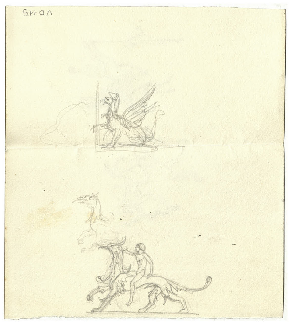Grifone; Uomo a cavallo di un grifone. Studio per finalino di Carlo Querceto, L'anima e il giorno, Bologna, Cappelli, 1932