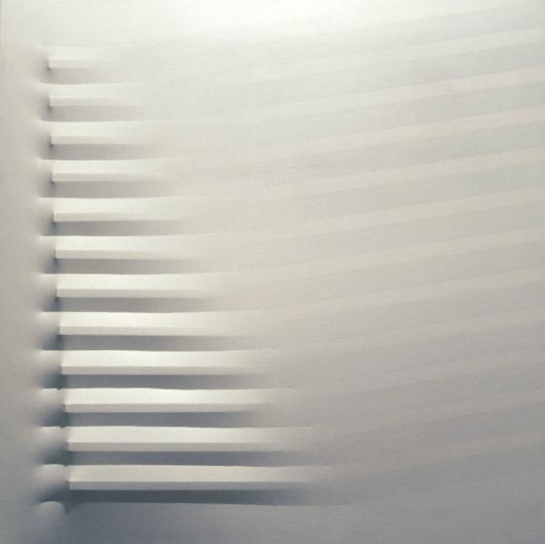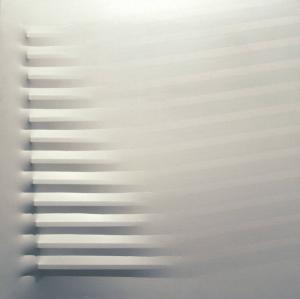 - NOTIZIE STORICO CRITICHE Nell'opera prevale una certa vocazione tridimensionale: il supporto si anima di forme aggettanti in modo da creare giochi ed effetti di chiaro scuro che mutano a seconda dell'incidenza della luce sulla superficie. \nNegli anni dell'adesione ad Azimuth, insieme anche a Enrico Castellani e Piero Manzoni, Agostino Bonalumi sperimenta un nuovo linguaggio a metà tra pittura e scultura, trasformando la tela in bassorilievo al punto tale da conferire alle sue opere un forte impatto e valore plastico. Affascinato dalle sperimentazioni di Lucio Fontana e dalle problematiche in ambito spaziale innescate dalla sua opera, la ricerca di Bonalumi, in parte influenzata dagli studi giovanili di disegno tecnico e meccanico, si concreta nel controllo rigoroso dei mezzi espressivi. Estroflessioni ed introflessioni del supporto - attuate mediante la disposizione regolare di strutture rigide, come chiodi, centine, telai incurvati, sagome di legno o di metallo che dilatano tridimensionalmente la superficie dipinta ponendola in un nuovo rapporto con lo spettatore - si accompagnano, in modo costante, alla colorazione monocroma della tela.\nDa una parte l'impianto pittorico diventa tridimensionale, dall'altro l'immagine plastica prodotta si pone come trasgressione, sfida nei confronti della bidimensionalità. Il quadro si fa dunque oggetto che si estende e interagisce con l'ambiente circostante. Procedendo attraverso un progetto e un disegno che denotano una perizia artigianale, l'artista si accosta alla tela con una prassi scientifica ed oggettiva. È evidente nelle sue opere il rifiuto di qualsiasi vena esistenzialista o neorealista e la rinuncia a un'emotività soggettiva che conduce allo svuotamento della tela da segni, gesti, materie e colori che appartenevano al retaggio dell'arte informale. In anni più recenti Bonalumi sembra volgersi maggiormente ad uno studio più analitico delle potenzialità illusorie della luce e dei fenomeni percettivi da essa innescati, mentre le estroflessioni modulari degli anni precedenti cederanno il passo a favore di aggetti irregolari.