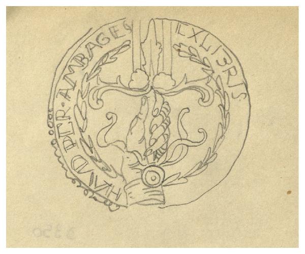 Mano che impugna una spada - Haud per ambages. Disegno preparatorio per ex libris