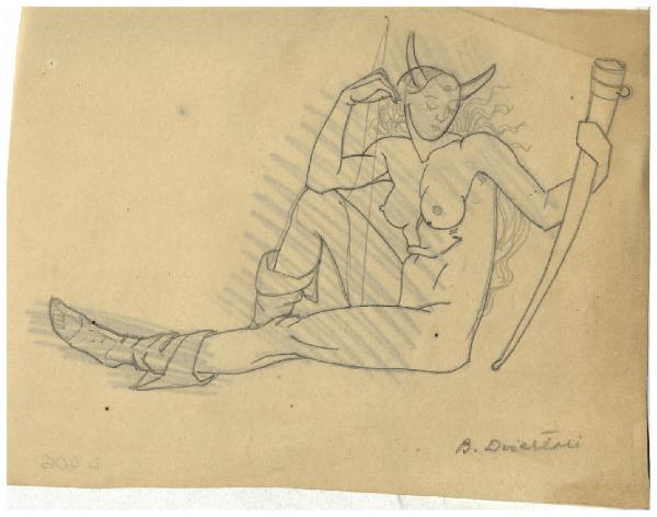 Diana/ Luna. Disegno preparatorio per l'acquaforte mai realizzata Il Pianeta Luna