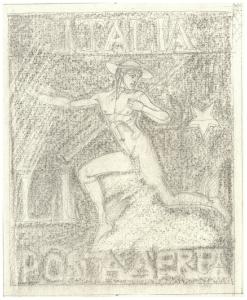 - NOTIZIE STORICO CRITICHE Il disegno è riferibile al progetto sottoposto da Disertori alla commmissione (nominata nel maggio del 1925) per la prima serie originale di francobolli per la Posta Aerea, emessa nel 1930. I due bozzetti di Disertori, che avevano come soggetto rispettivamente il dio Mercurio e una cicogna con una lettera nel becco, sarebbero stati tra quelli scelti dalla commissione ma non utilizzati (V. Salierno, Due bozzetti inediti di Benvenuto Disertori per la serie di Posta Aerea del 1930, in "Il Nuovo Corriere Filatelico", 1981, n. 33, pp. 30-31). I bozzetti conservati nel Fondo Disertori del Gabinetto dei Disegni non corrispondono alla versione definitiva (con cornice decorativa e firma in basso a destra) pubblicata da Salierno nel 1981. La figura di Mercurio è nella stessa posa che poi Disertori avrebbe ripreso nell'acquaforte del 1947-1948 Il Pianeta Mercurio (Bellini-Alberti 61).