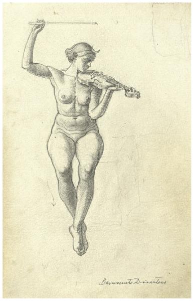 Nudo femminile con violino. Disegno preparatorio per La Cerba