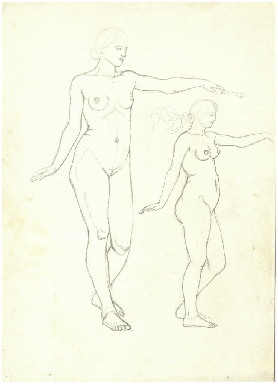 Due studi di nudo femminile (disegno preparatorio per la figura della Fortuna nell'ex libris per Vittorio Pica)