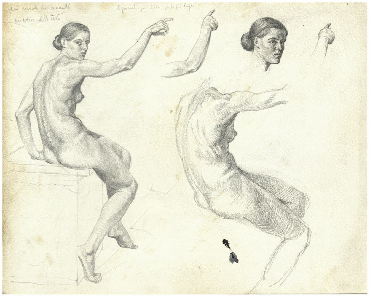 Studi per un nudo femminile seduto di spalle. Disegno preparatorio per l'acquaforte Apollo e la Fortuna