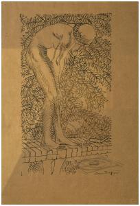 Nudo femminile chinato su uno specchio d'acqua (disegno preparatorio per l'acquaforte)