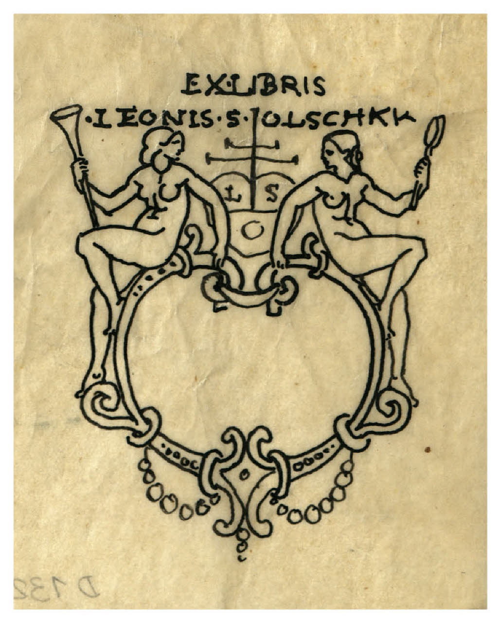 Cornice decorativa con due figure femminili (studio di ex libris per l'editore Leo Samuel Olschki)