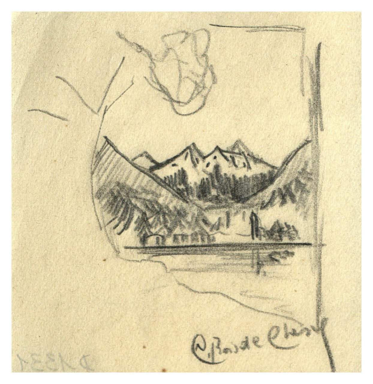 Paesaggio con montagne (disegno preparatorio per l'ex libris di Charles Bois de Chesne - pseud. Carlo Querceto)