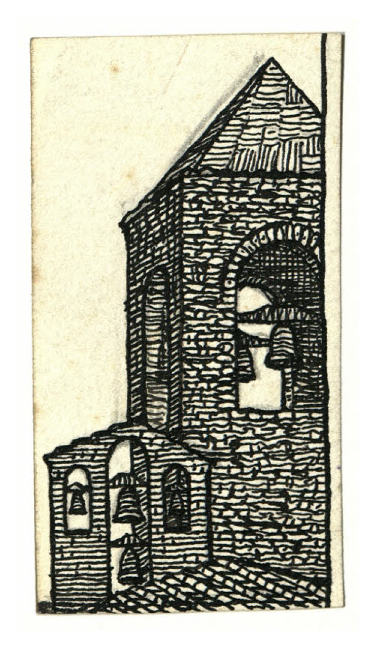 Campanile. Disegno preparatorio per l'acquaforte Torri di San Gimignano: particolare