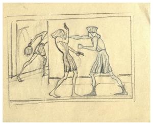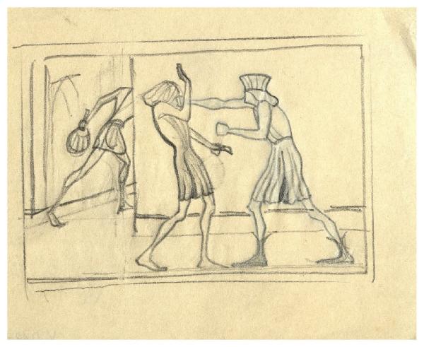 Disegno preparatorio per illustrazione silografica del Decamerone, Giornata IX-Emilia: novella ottava