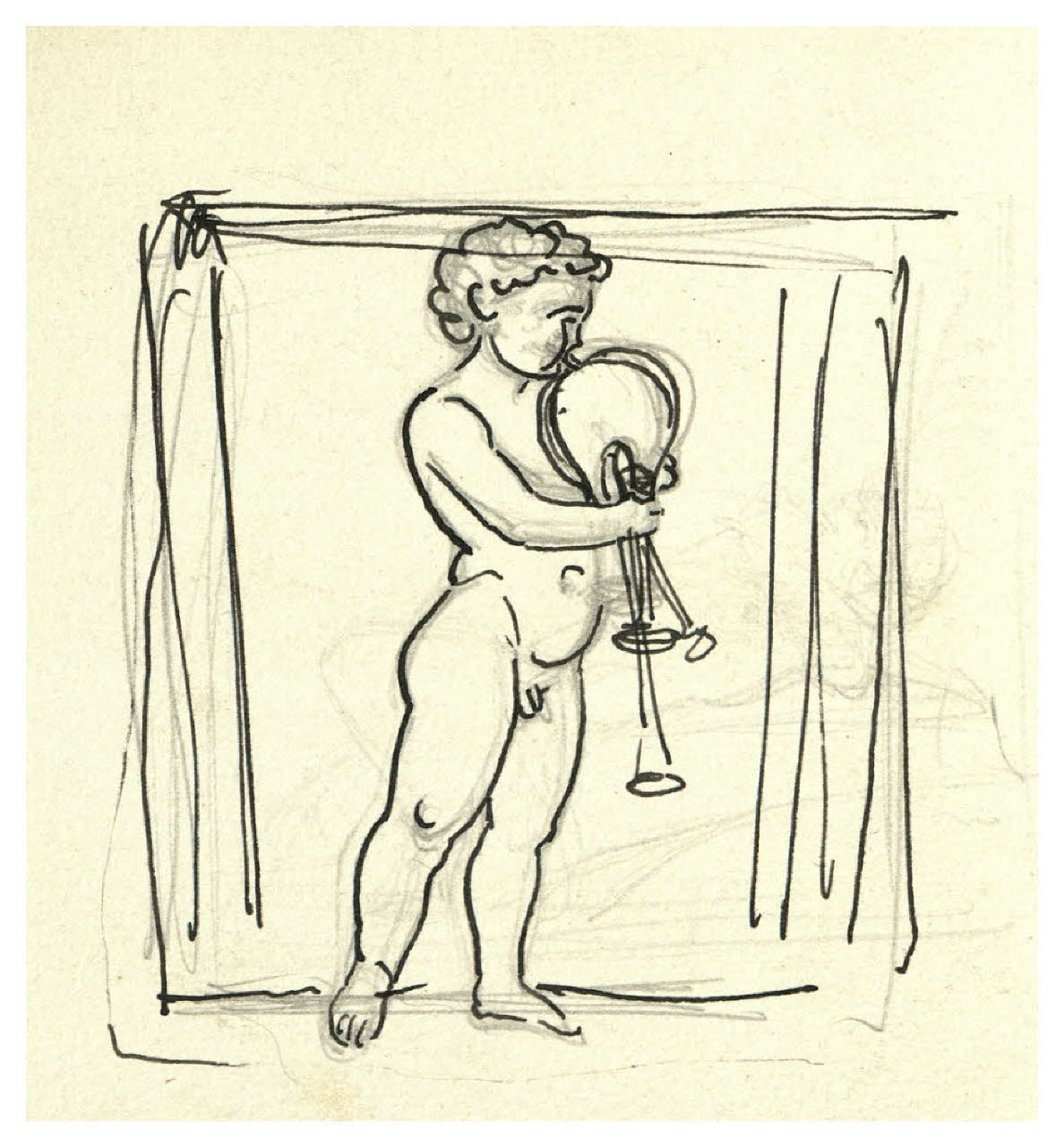 Putto che suona una zampogna (disegno preparatorio per la copertina di Amalia Guglielminetti, Tipi bizzarri, Milano, Mondadori, 1931)