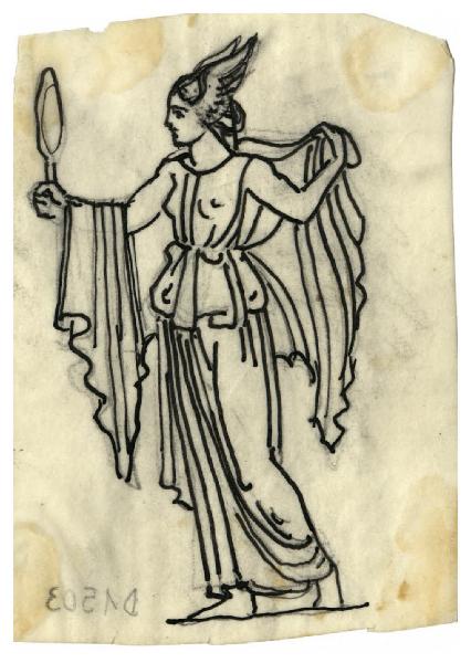 Figura femminile allegorica che tiene in mano uno specchio (disegno preparatorio per la copertina di Giovanni Papini, Filosofia e letteratura, Milano, Mondadori, 1961)