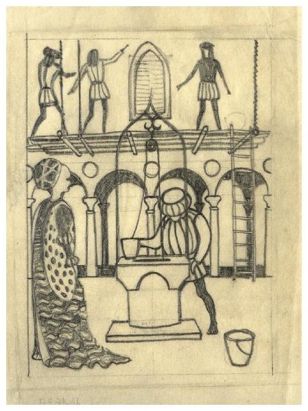 Disegno preparatorio per illustrazione silografica del Decamerone, Giornata IX-Emilia: novella quinta