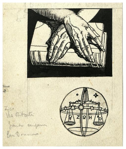 Mani e libro. Disegno preparatorio per l'ex libris per Cesare Olschki, Dimitte vana vanis; Segno zodiacale della Bilancia. Disegno preparatorio per l'acquaforte Il Pianeta Venere