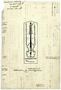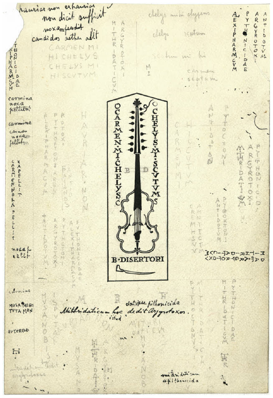 Viola - ocarmen mi chelysc oc helys mi scutums (disegno preparatorio per l'ex libris per Benvenuto Disertori, Mithridaticum hoc dedit Argyrotoxus)