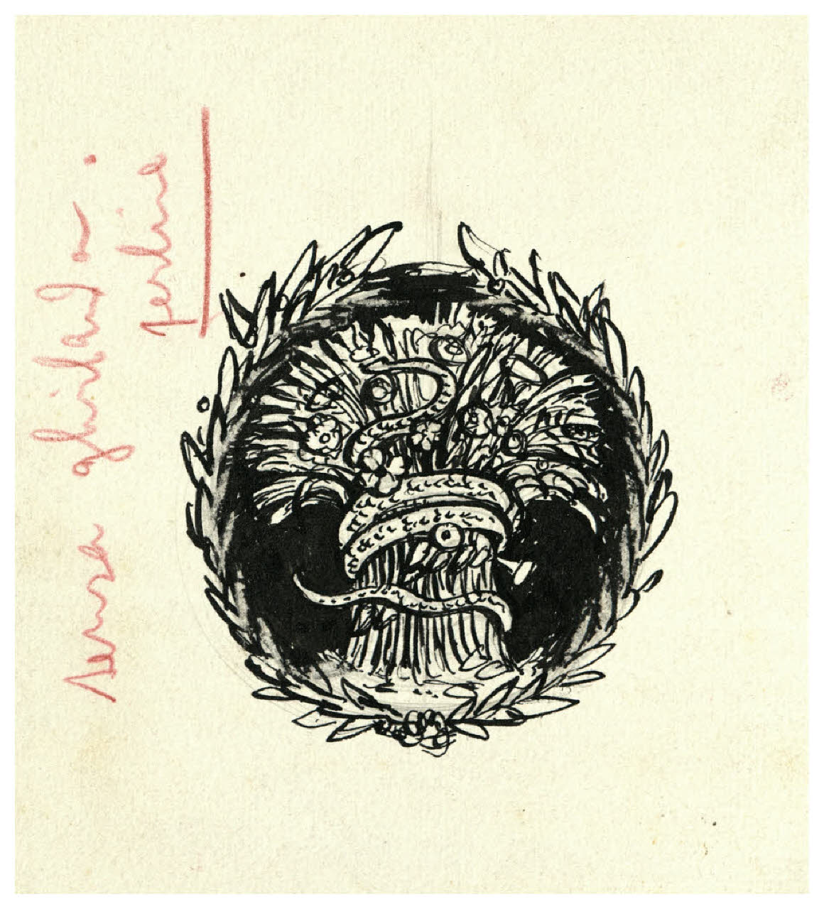 Serpente che avvolge con le sue spire un mazzo di fiori (disegno preparatorio per l'emblema Pharmacum ex utrisque)
