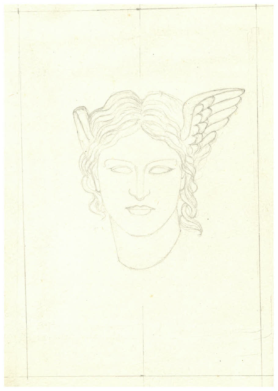 Testa di Minerva. Disegno preparatorio per la copertina di Giovanni Pascoli, Prose. 1: Pensieri di varia umanità, Milano, Mondadori, 1946