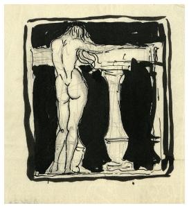 Nudo femminile di spalle, appoggiato ad una balaustra