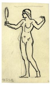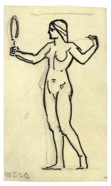 Figura femminile allegorica che tiene in mano uno specchio (disegno preparatorio per la copertina di Giovanni Papini, Filosofia e letteratura, Milano, Mondadori, 1961)