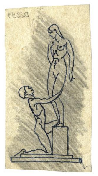 Due figure, una in ginocchio. Disegno preparatorio per la copertina di George Bernard Shaw, Pigmalione, Milano, Mondadori, 1928