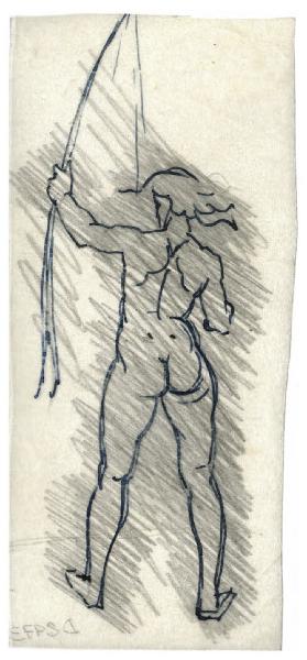 Studio di nudo con arco. Disegno preparatorio per La cerba