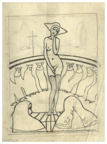 Disegno preparatorio per illustrazione silografica del Decamerone, Giornata IX-Emilia: novella