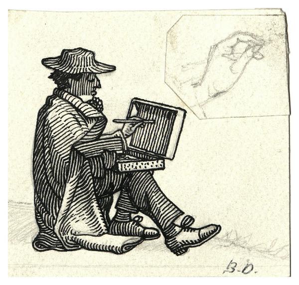 Ritratto di Umberto Moggioli mentre dipinge seduto a terra