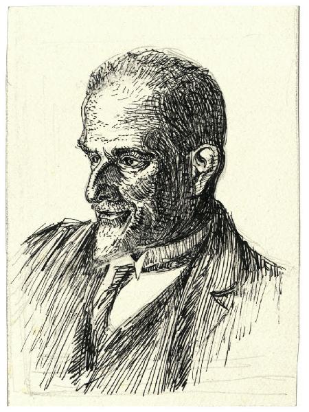 - NOTIZIE STORICO CRITICHE La cronologia verso il 1940 proposta per questo ritratto nel catalogo Del Prato-Salvadori non è coerente con gli estremi del personaggio raffigurato, lo storico della letteratura italiana Vittorio Rossi (Venezia, 1865-Roma, 1938). Se non si tratta di un ritratto postumo la datazione è da anticipare entro il 1938. Il ritratto a penna è stato preceduto da uno a matita (Fondo Disertori, inv. D 2644).