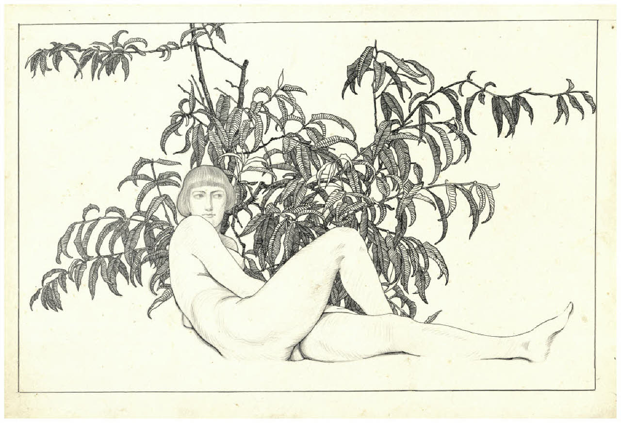 Nudo femminile e ramo di pesco (disegno preparatorio per l'incisione Capriccio)