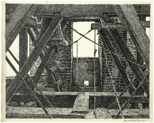 - NOTIZIE STORICO CRITICHE Studio preparatorio per l'incisione "Campane di S. Agostino a Perugia", 1919 ca. (cat. Bellini, Alberti 2000, p. 48, n. 34).\n