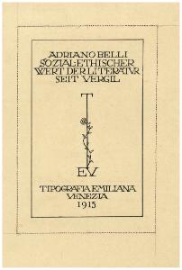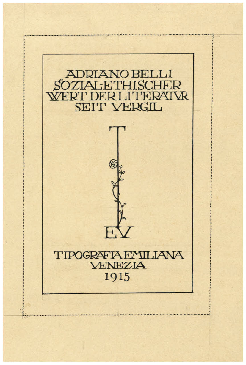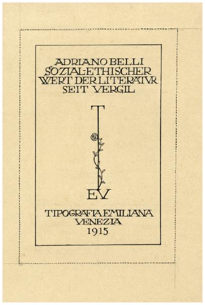 Bozzetto per copertina di Adriano Belli, Sozial ethischer Wert der Literatur seit Vergil , Venezia, Tipografia Emiliana, 1915