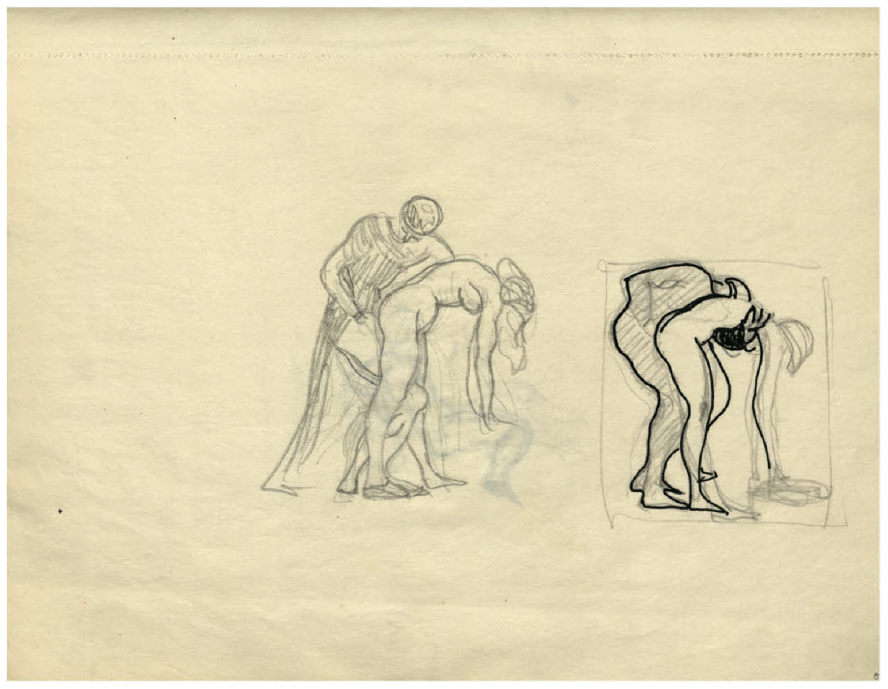 Disegno preparatorio per illustrazione silografica del Decamerone, Giornata IX-Emilia: novella decima (variante di studio)