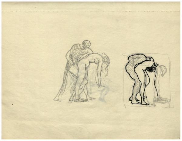- NOTIZIE STORICO CRITICHE L'album del quale fa parte il disegno qui schedato può datarsi alla prima metà degli anni Dieci, dopo il rientro in Italia nel 1911, quando Disertori intraprende una serie di viaggi e conosce le città medioevali del centro Italia. Vi si riconoscono infatti vedute di San Gimignano e Perugia. Sono inoltre presenti disegni destinati a progetti editoriali come il Decameron per le edizioni Formiggini (edito nel 1916, ma in preparazione dal 1913-14), la Leggenda di San Basilio di Ildebrando Pizzetti (1912), e Frammenti vissuti di Torello Fanciullacci per la Tipografia emiliana a Venezia (1913).