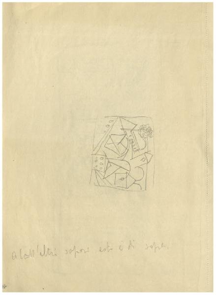- NOTIZIE STORICO CRITICHE L'album del quale fa parte questo disegno contiene almeno due soggetti, il ritratto di Antonio Rizzi preparatorio per la xilografia datata 1916 (carta 1; Bellini-Alberti 88), e lo studio per un'illustrazione apparsa sul numero di settembre del 1916 (carta 7), che forniscono un utile termine per fissarne la cronologia.