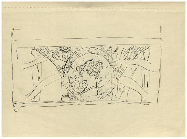 Fregio con medaglione con un ritratto femminile di profilo. Studio per un cofanetto?