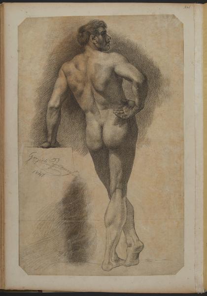 Studio accademico di un uomo seduto visto da tergo