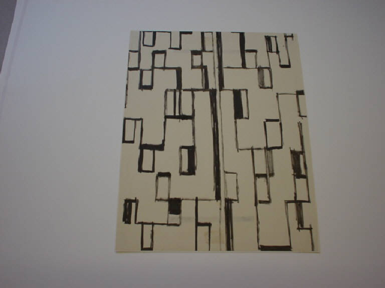 L'intero piano rettangolare del foglio è cosparso da una serie di moduli rettangolari di uguale dimensione, contornati di nero e collegati tra loro per mezzo di una griglia irregolare di linee nere di diverso spessore.